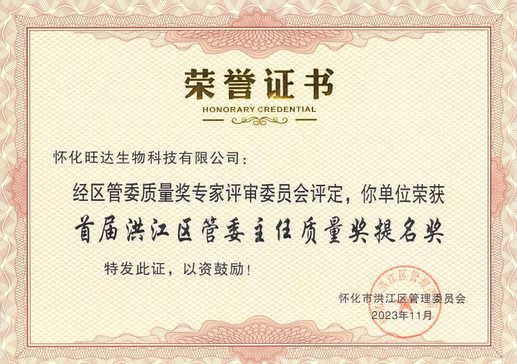 公司喜获2023年洪江区质量强区暨首届区管委主任质量奖提名奖